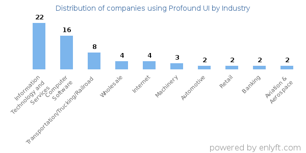 Looking at Profound UI customers by industry, we find that Information Technology and Services (24%), Computer Software (17%) and Transportation/Trucking/Railroad (8%) are the largest segments.