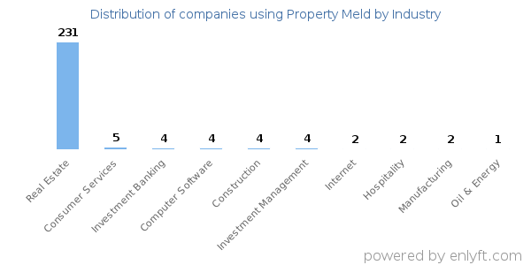 We have data on 412 companies that use Property Meld. The companies using Property Meld are most often found in United States and in the Real Estate industry. Property Meld is most often used by companies with 1-10 employees and 1M-10M dollars in revenue. Our data for Property Meld usage goes back as far as 3 years and 6 months.