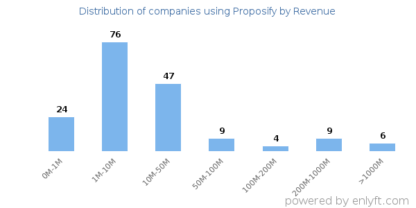 Of all the customers that are using Proposify, a majority (81%) are small (<$50M), 0% are large (>$1000M) and 0% are medium-sized.