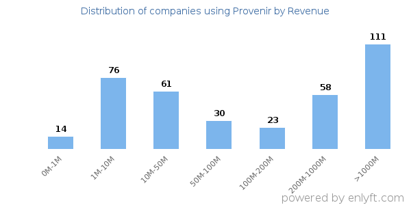 We have data on 405 companies that use Provenir. The companies using Provenir are most often found in United States and in the Financial Services industry. Provenir is most often used by companies with >10000 employees and >1000M dollars in revenue. Our data for Provenir usage goes back as far as 10 years and 3 months.