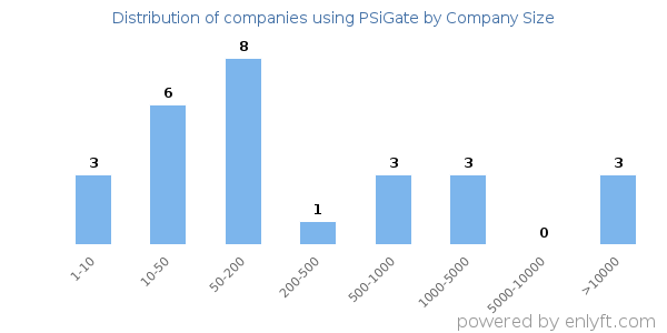 We have data on 27 companies that use PSiGate. The companies using PSiGate are most often found in Canada and in the Financial Services industry. PSiGate is most often used by companies with 50-200 employees and 1M-10M dollars in revenue. Our data for PSiGate usage goes back as far as 8 years and 4 months.