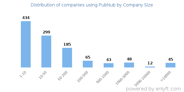 We have data on 1,219 companies that use PubNub. The companies using PubNub are most often found in United States and in the Information Technology and Services industry. PubNub is most often used by companies with 1-10 employees and 1M-10M dollars in revenue. Our data for PubNub usage goes back as far as 4 years and 8 months.