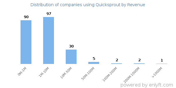 We have data on 293 companies that use Quicksprout. The companies using Quicksprout are most often found in United States and in the Marketing and Advertising industry. Quicksprout is most often used by companies with 1-10 employees and 1M-10M dollars in revenue. Our data for Quicksprout usage goes back as far as 5 years and 2 months.