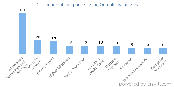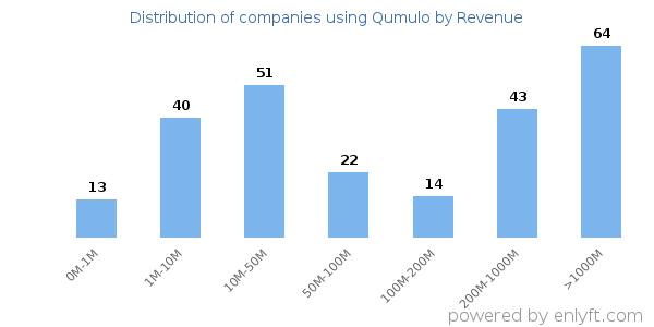 We have data on 255 companies that use Qumulo. The companies using Qumulo are most often found in United States and in the Information Technology and Services industry. Qumulo is most often used by companies with >10000 employees and >1000M dollars in revenue. Our data for Qumulo usage goes back as far as 8 years and 3 months.