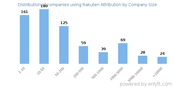 We have data on 713 companies that use Rakuten Attribution. The companies using Rakuten Attribution are most often found in United States and in the Retail industry. Rakuten Attribution is most often used by companies with 10-50 employees and 1M-10M dollars in revenue. Our data for Rakuten Attribution usage goes back as far as 8 years and 10 months.