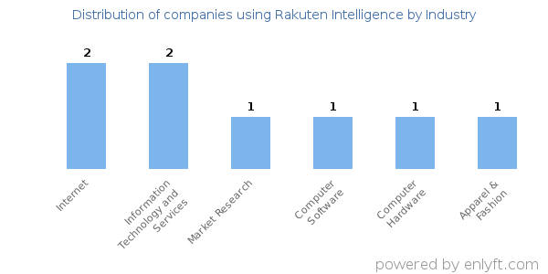 We have data on 11 companies that use Rakuten Intelligence. The companies using Rakuten Intelligence are most often found in United States and in the Internet industry. Rakuten Intelligence is most often used by companies with >10000 employees and >1000M dollars in revenue. Our data for Rakuten Intelligence usage goes back as far as 4 years and 2 months.