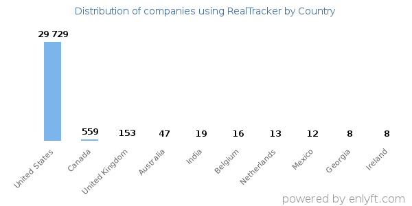 We have data on 37,247 companies that use RealTracker. The companies using RealTracker are most often found in United States and in the Construction industry. RealTracker is most often used by companies with 1-10 employees and 1M-10M dollars in revenue. Our data for RealTracker usage goes back as far as 9 years.