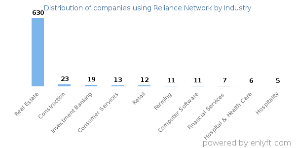 We have data on 2,169 companies that use Reliance Network. The companies using Reliance Network are most often found in United States and in the Real Estate industry. Reliance Network is most often used by companies with 1-10 employees and 10M-50M dollars in revenue. Our data for Reliance Network usage goes back as far as 5 years and 2 months.