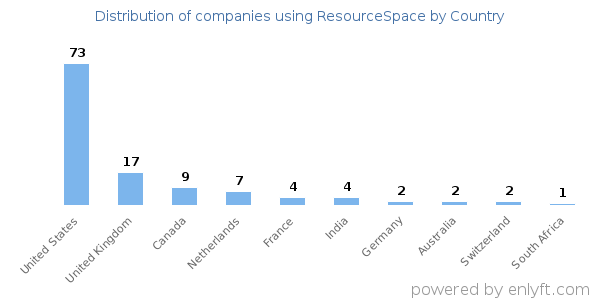 We have data on 128 companies that use ResourceSpace. The companies using ResourceSpace are most often found in United States and in the Higher Education industry. ResourceSpace is most often used by companies with 1000-5000 employees and 10M-50M dollars in revenue. Our data for ResourceSpace usage goes back as far as 8 years and 3 months.
