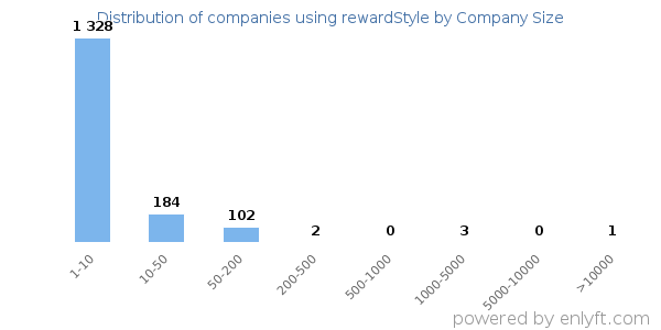 We have data on 3,397 companies that use rewardStyle. rewardStyle is most often used by companies with 1-10 employees and 0M-1M dollars in revenue. Our data for rewardStyle usage goes back as far as 5 years and 2 months.