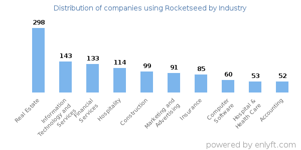 Looking at Rocketseed customers by industry, we find that Real Estate (11%) and Information Technology and Services (5%) are the largest segments.