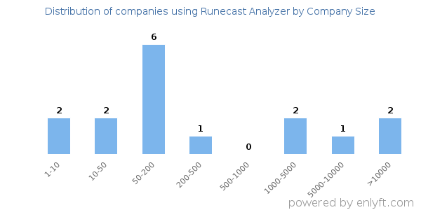 We have data on 16 companies that use Runecast Analyzer. The companies using Runecast Analyzer are most often found in United Kingdom and in the Information Technology and Services industry. Runecast Analyzer is most often used by companies with 50-200 employees and 10M-50M dollars in revenue. Our data for Runecast Analyzer usage goes back as far as 3 years and 2 months.