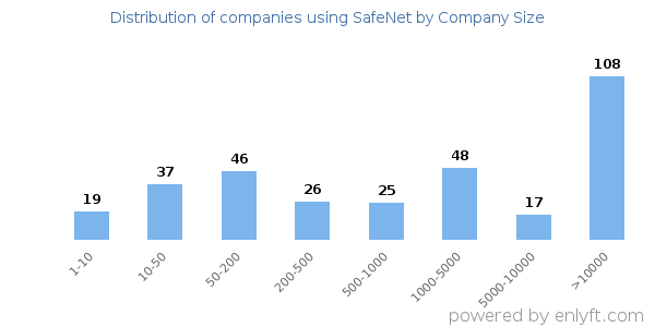 Of all the customers that are using SafeNet, a majority (53%) are large (>$1000M), 28% are small (<$50M) and 13% are medium-sized.