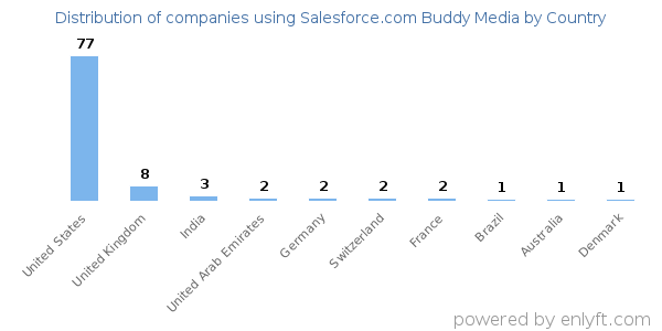 73% of Salesforce.com Buddy Media customers are in United States and 7% are in United Kingdom.