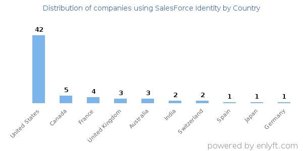 61% of SalesForce Identity customers are in United States and 6% are in Canada.
