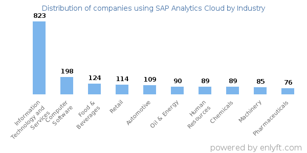 We have data on 3,549 companies that use SAP Analytics Cloud. The companies using SAP Analytics Cloud are most often found in United States and in the Information Technology and Services industry. SAP Analytics Cloud is most often used by companies with >10000 employees and >1000M dollars in revenue. Our data for SAP Analytics Cloud usage goes back as far as 7 years and 9 months.