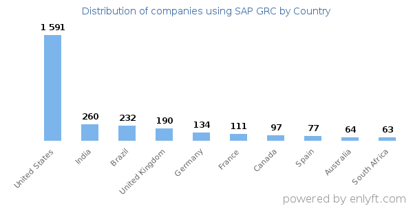 43% of SAP GRC customers are in United States, 7% are in India, 6% are in Brazil and 5% are in United Kingdom.