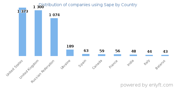 13% of Sape customers are in United States, 12% are in United Kingdom and 10% are in Russian Federation.