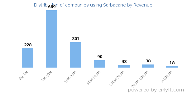 Of all the customers that are using Sarbacane, a majority (76%) are small (<$50M), 6% are large (>$1000M) and 13% are medium-sized.