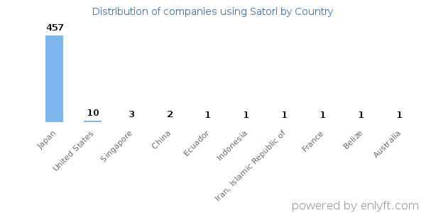 We have data on 582 companies that use Satori. The companies using Satori are most often found in Japan and in the Computer Software industry. Satori is most often used by companies with 50-200 employees and 1M-10M dollars in revenue. Our data for Satori usage goes back as far as 5 years and 2 months.