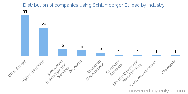 We have data on 72 companies that use Schlumberger Eclipse. The companies using Schlumberger Eclipse are most often found in United States and in the Oil & Energy industry. Schlumberger Eclipse is most often used by companies with >10000 employees and >1000M dollars in revenue. Our data for Schlumberger Eclipse usage goes back as far as 9 years and 7 months.