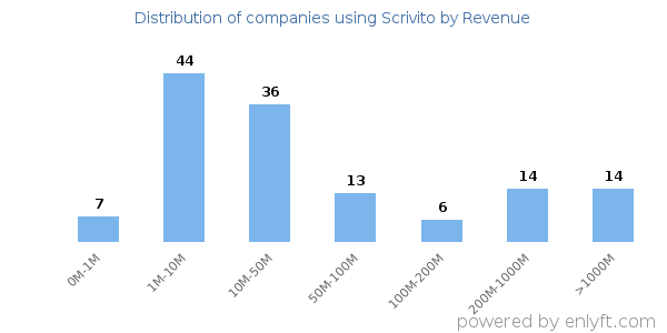 Of all the customers that are using Scrivito, a majority (56%) are small (<$50M), 22% are large (>$1000M) and 11% are medium-sized.