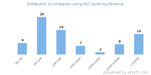 We have data on 94 companies that use SEO Spider. The companies using SEO Spider are most often found in United States and in the Marketing and Advertising industry. SEO Spider is most often used by companies with 10-50 employees and 1M-10M dollars in revenue. Our data for SEO Spider usage goes back as far as 8 years and 2 months.