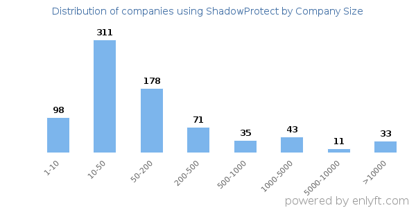 Of all the customers that are using ShadowProtect, a majority (74%) are small (<$50M), 13% are large (>$1000M) and 7% are medium-sized.