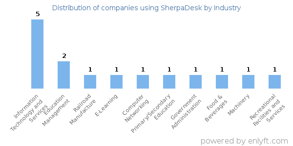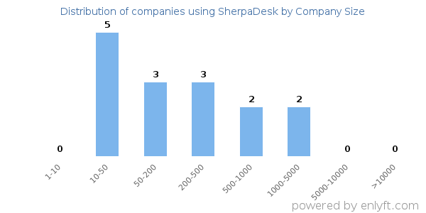 We have data on 15 companies that use SherpaDesk. The companies using SherpaDesk are most often found in United States and in the Information Technology and Services industry. SherpaDesk is most often used by companies with 10-50 employees and 10M-50M dollars in revenue. Our data for SherpaDesk usage goes back as far as 3 years and 1 months.