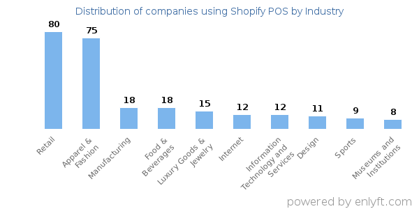 We have data on 390 companies that use Shopify POS. The companies using Shopify POS are most often found in United States and in the Retail industry. Shopify POS is most often used by companies with 10-50 employees and 1M-10M dollars in revenue. Our data for Shopify POS usage goes back as far as 3 years and 5 months.