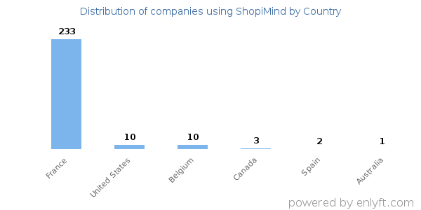 We have data on 285 companies that use ShopiMind. The companies using ShopiMind are most often found in France and in the Retail industry. ShopiMind is most often used by companies with 1-10 employees and 1M-10M dollars in revenue. Our data for ShopiMind usage goes back as far as 5 years and 2 months.