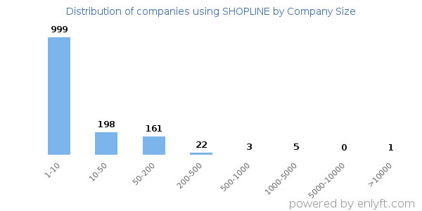 Of all the customers that are using SHOPLINE, a majority (56%) are small (<50 employees), 15% are large (>1000 employees) and 28% are medium-sized.