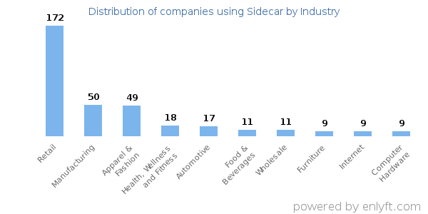 We have data on 480 companies that use Sidecar. The companies using Sidecar are most often found in United States and in the Retail industry. Sidecar is most often used by companies with 10-50 employees and 1M-10M dollars in revenue. Our data for Sidecar usage goes back as far as 6 years and 11 months.