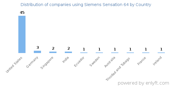We have data on 63 companies that use Siemens Sensation 64. The companies using Siemens Sensation 64 are most often found in United States and in the Hospital & Health Care industry. Siemens Sensation 64 is most often used by companies with >10000 employees and >1000M dollars in revenue. Our data for Siemens Sensation 64 usage goes back as far as 9 years and 2 months.