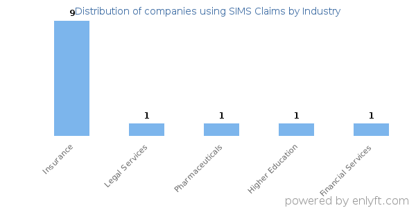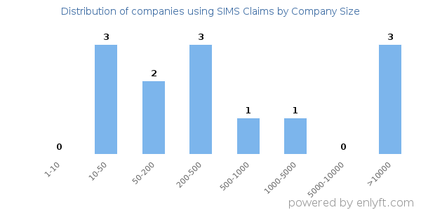 We have data on 13 companies that use SIMS Claims. The companies using SIMS Claims are most often found in United States and in the Insurance industry. SIMS Claims is most often used by companies with >10000 employees and 50M-100M dollars in revenue. Our data for SIMS Claims usage goes back as far as 8 years and 4 months.