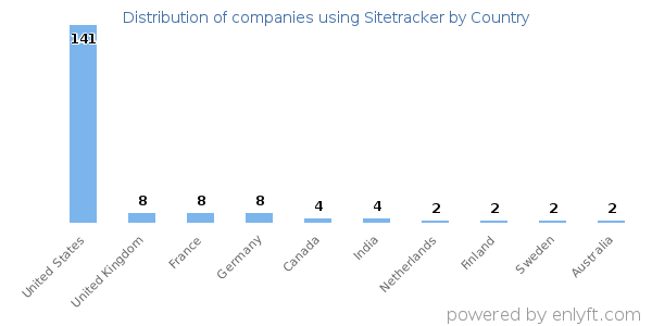 73% of Sitetracker customers are in United States.