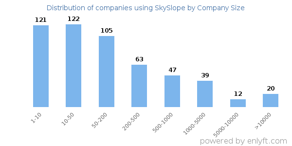 We have data on 571 companies that use SkySlope. The companies using SkySlope are most often found in United States and in the Real Estate industry. SkySlope is most often used by companies with 10-50 employees and 10M-50M dollars in revenue. Our data for SkySlope usage goes back as far as 8 years and 3 months.
