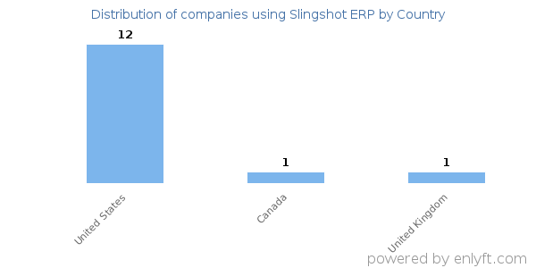 We have data on 14 companies that use Slingshot ERP. The companies using Slingshot ERP are most often found in United States and in the Computer Software industry. Slingshot ERP is most often used by companies with 50-200 employees and >1000M dollars in revenue. Our data for Slingshot ERP usage goes back as far as 8 years and 4 months.