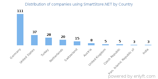 We have data on 349 companies that use SmartStore.NET. The companies using SmartStore.NET are most often found in Germany and in the Retail industry. SmartStore.NET is most often used by companies with 1-10 employees and 1M-10M dollars in revenue. Our data for SmartStore.NET usage goes back as far as 8 years and 4 months.