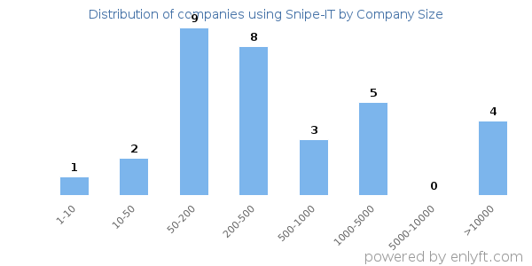 We have data on 33 companies that use Snipe-IT. The companies using Snipe-IT are most often found in United States and in the Information Technology and Services industry. Snipe-IT is most often used by companies with 50-200 employees and 10M-50M dollars in revenue. Our data for Snipe-IT usage goes back as far as 2 years and 11 months.