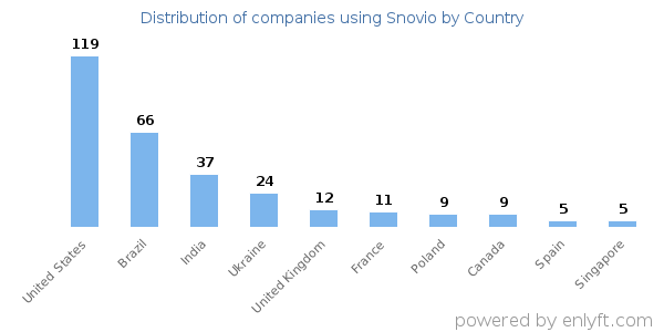We have data on 372 companies that use Snovio. The companies using Snovio are most often found in United States and in the Information Technology and Services industry. Snovio is most often used by companies with 10-50 employees and 1M-10M dollars in revenue. Our data for Snovio usage goes back as far as 3 years and 2 months.