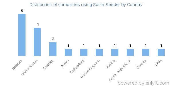 We have data on 21 companies that use Social Seeder. The companies using Social Seeder are most often found in Belgium and in the Machinery industry. Social Seeder is most often used by companies with 10-50 employees and 1M-10M dollars in revenue. Our data for Social Seeder usage goes back as far as 3 years and 4 months.