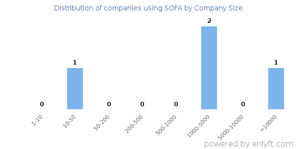 Of all the customers that are using SOFA, 8% are small (<50 employees), 0% are medium-sized and 41% are large (>1000 employees).