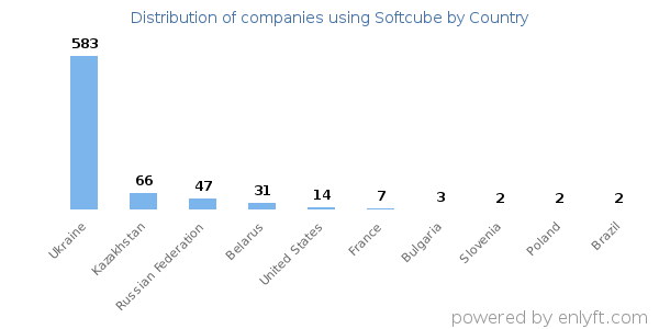 We have data on 985 companies that use Softcube. The companies using Softcube are most often found in Ukraine and in the Retail industry. Softcube is most often used by companies with 1-10 employees and 1M-10M dollars in revenue. Our data for Softcube usage goes back as far as 5 years and 2 months.