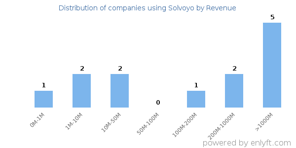 Of all the customers that are using Solvoyo, 18% are small (<$50M), 0% are medium-sized and 41% are large (>$1000M).