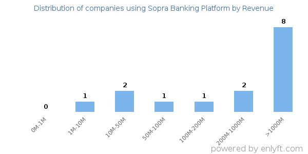 We have data on 15 companies that use Sopra Banking Platform. The companies using Sopra Banking Platform are most often found in Belgium and in the Information Technology and Services industry. Sopra Banking Platform is most often used by companies with >10000 employees and >1000M dollars in revenue. Our data for Sopra Banking Platform usage goes back as far as 3 years and 5 months.