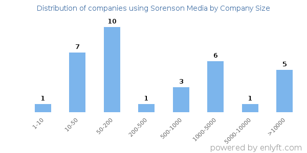 Of all the customers that are using Sorenson Media, 18% are small (<50 employees), 33% are medium-sized and 27% are large (>1000 employees).