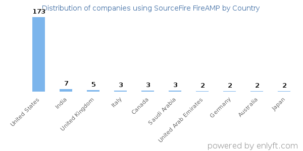 We have data on 222 companies that use SourceFire FireAMP. The companies using SourceFire FireAMP are most often found in United States and in the Information Technology and Services industry. SourceFire FireAMP is most often used by companies with >10000 employees and >1000M dollars in revenue. Our data for SourceFire FireAMP usage goes back as far as 9 years and 2 months.
