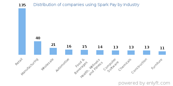 We have data on 736 companies that use Spark Pay. The companies using Spark Pay are most often found in United States and in the Retail industry. Spark Pay is most often used by companies with 1-10 employees and 1M-10M dollars in revenue. Our data for Spark Pay usage goes back as far as 8 years and 10 months.