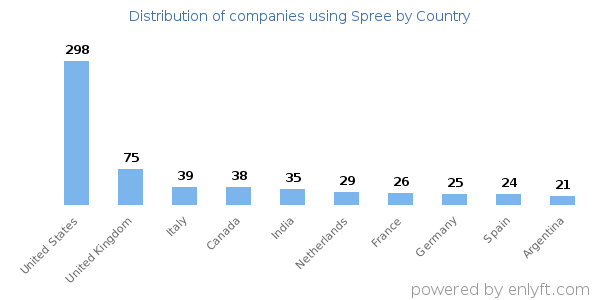 We have data on 943 companies that use Spree. The companies using Spree are most often found in United States and in the Retail industry. Spree is most often used by companies with 1-10 employees and 1M-10M dollars in revenue. Our data for Spree usage goes back as far as 8 years and 10 months.
